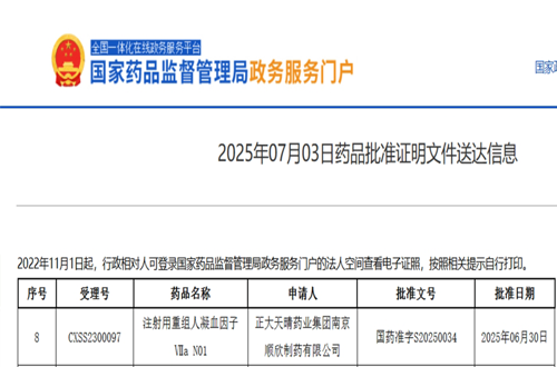 中生动态国产首个!中国生物制药重组人凝血因子Ⅶa获批上市