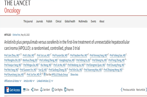 近日,中国生物制药(1177.HK)1类创新药盐酸安罗替尼胶囊(福可维®)联合派安普利单抗注射液(安尼可®)一线治疗晚期肝细胞癌(HCC)的关键注册Ⅲ期临床试验(APOLLO研究)结果,在柳叶刀旗下肿瘤学期刊《The Lancet Oncology》(IF:41.6)上发表。2025-05-13 -