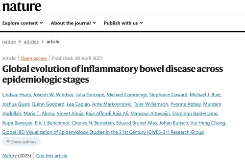 在第15个“世界炎症性肠病日”到来之际,香港中文大学医学院与加拿大卡尔加里大学共同开展的一项全球炎症性肠病(IBD)流行病学研究结果,于国际权威科学期刊《自然》发表,揭示世界各地可依循四个阶段观察其地区IBD流行情况及演变,而中国已步入“发病率加速阶段”。2025-05-14 -